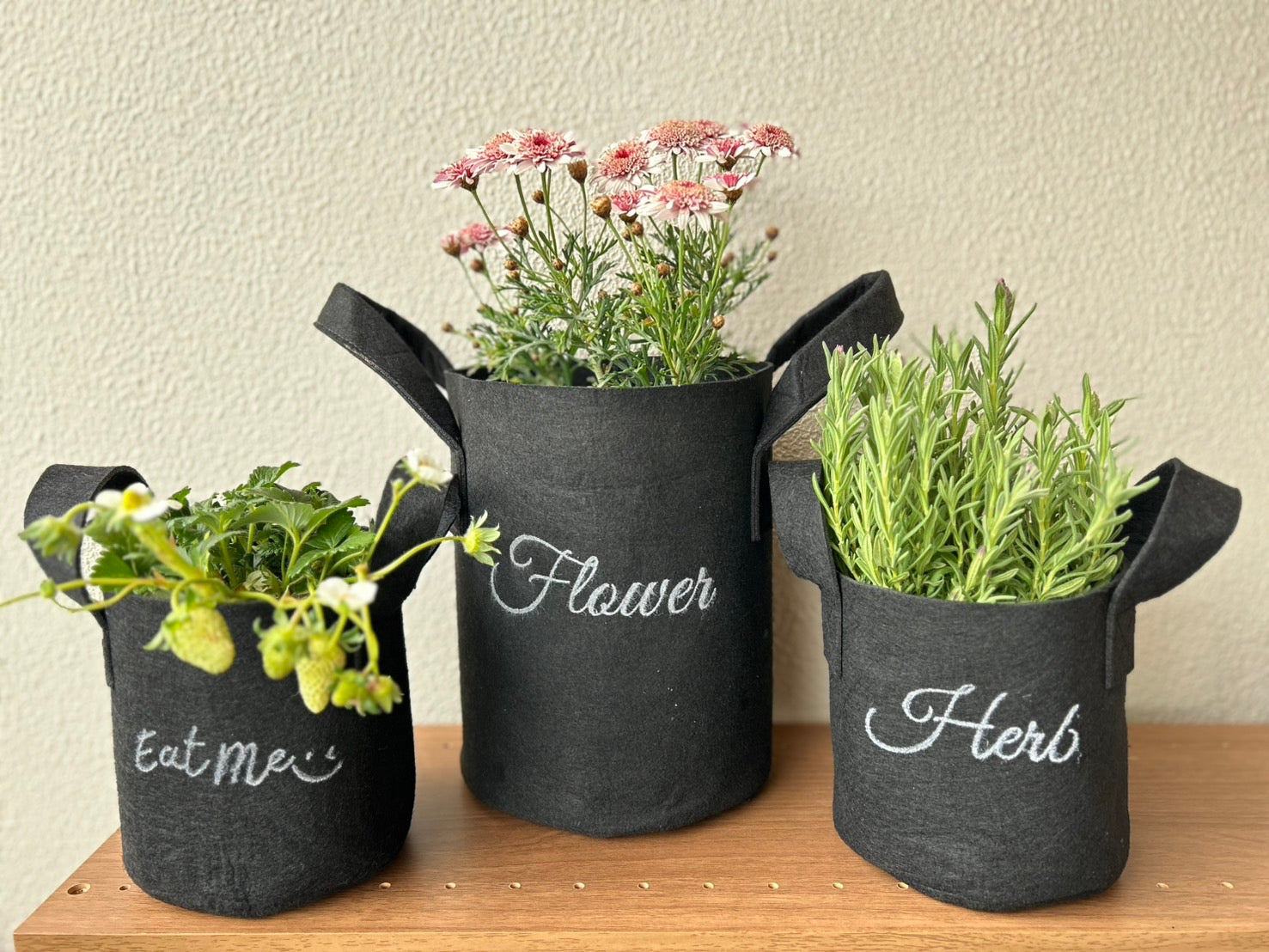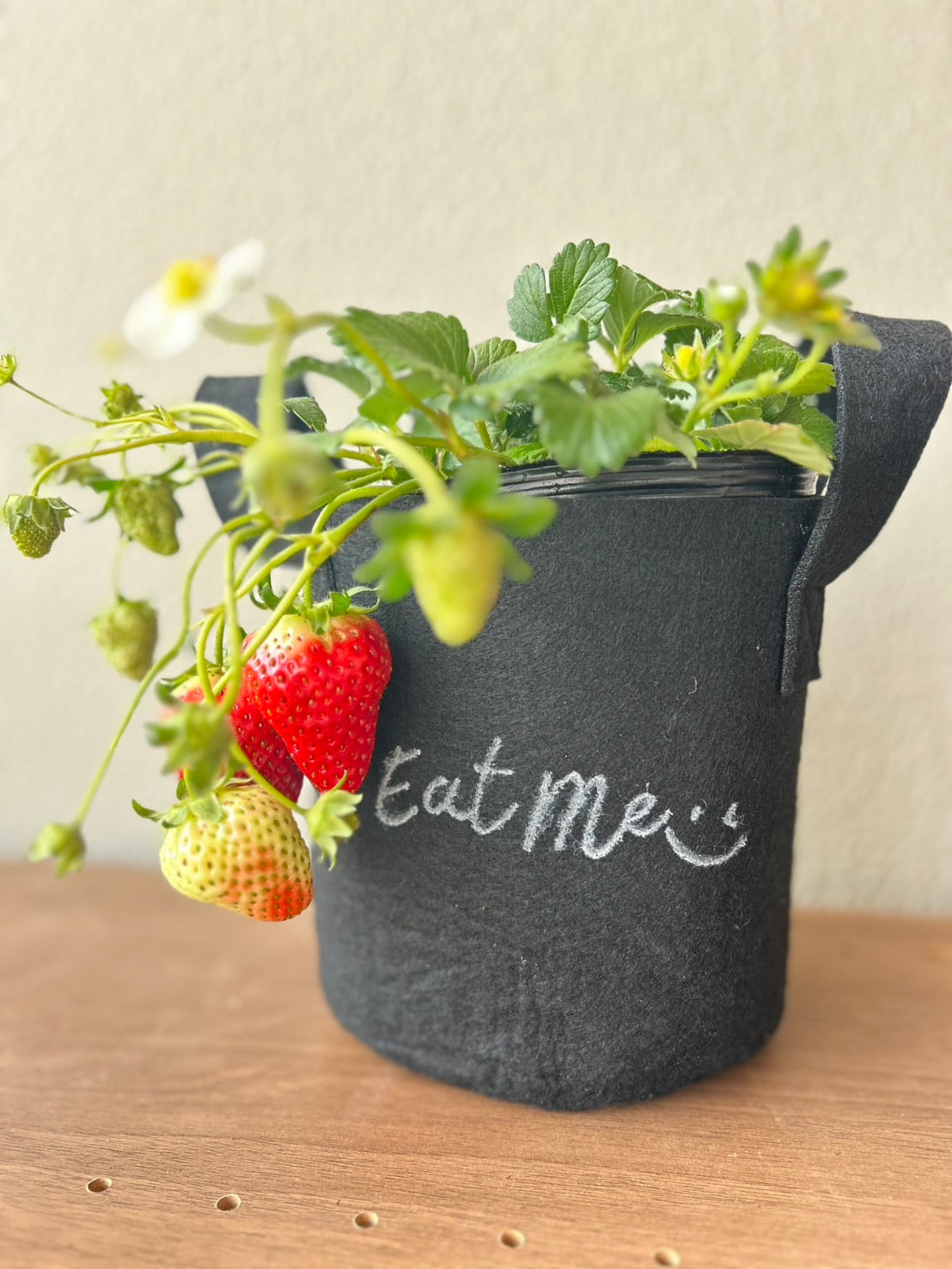 いちごやパセリなど、小さなポットで育てる身近な植物も、「Eat me!」の文字を添えるだけでぐっとおしゃれに。遊び心のあるステンシルで、キッチンやベランダのグリーンをもっと楽しく!