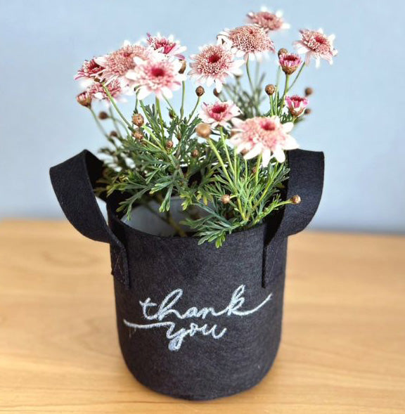 そんな時は「Thank you」のステンシルを施した鉢カバーに入れるだけで、グッとおしゃれに早変わり。